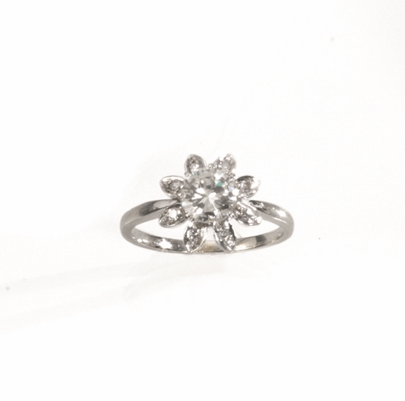con brillante di ct. 1 circa montato a griffe entro una corolla in brillanti, g 4