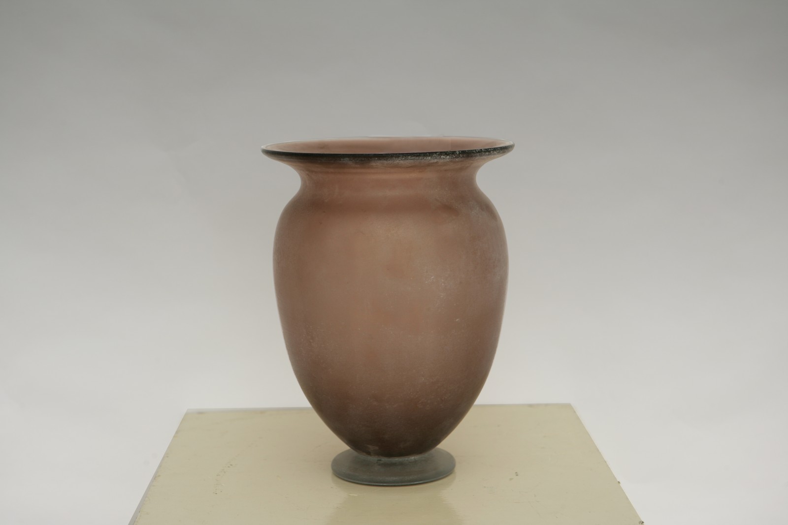 Lot 94 | MOLIN CARLO. Vaso in vetro di Murano, satinato lilla, corpo ovoidale su piede...