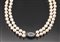 realizzata a due fili di perle coltivate diam. mm 8, fermatura a navette in oro bianco decorata da piccoli zaffiri e brillanti, g 109