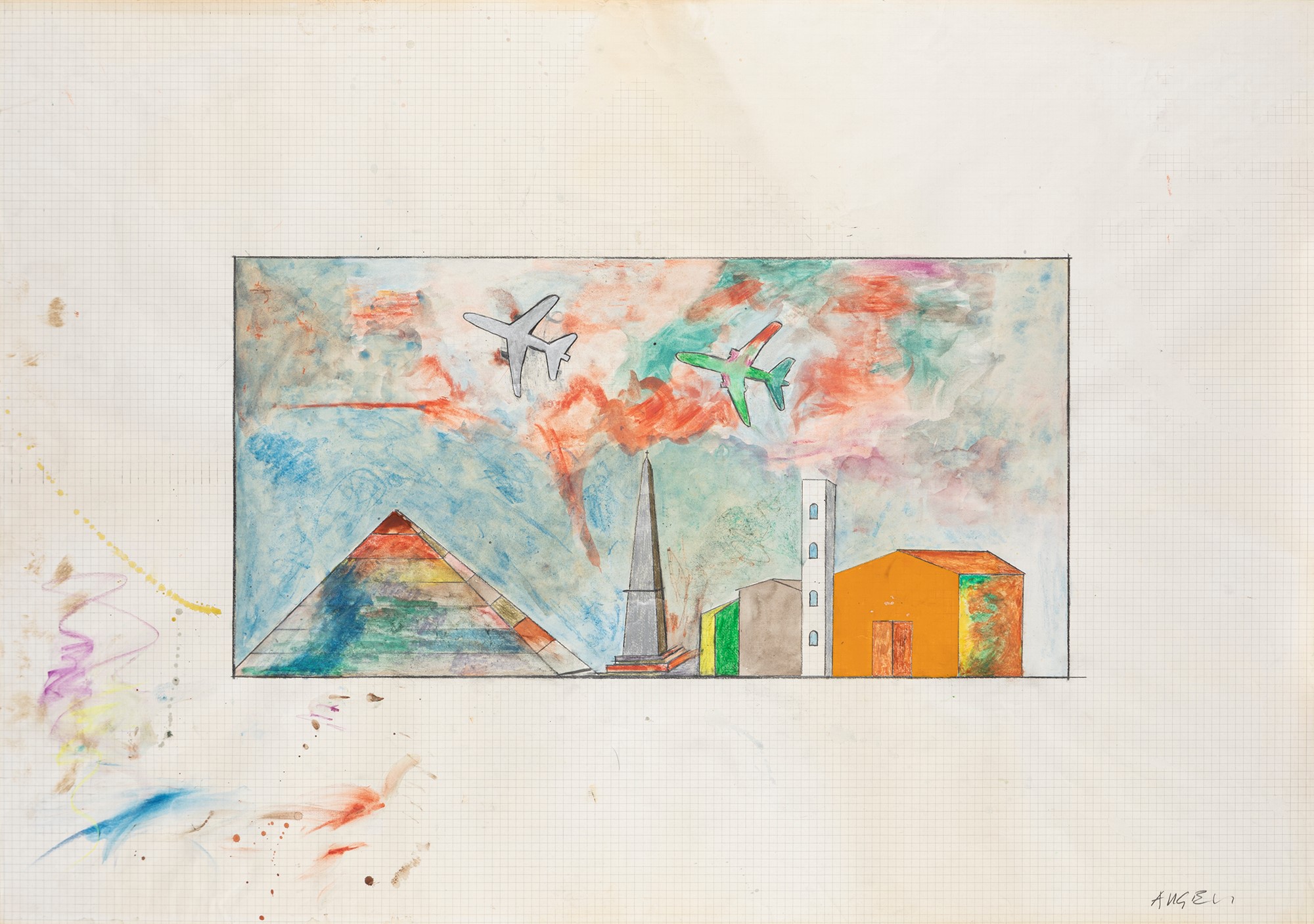 tecnica mista su carta quadrettata
