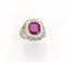 Anello in oro bianco, rubino e diamanti la parte anteriore traforata a linee...