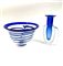 Centrotavola in vetro trasparente incolore con decorazione spiraliforme e orlo blu e azzurro, firmato,datato e numerato a punta sotto la base "Studio Ahos Sweden 1988 H0-A2" unito a un vaso in vetro sommerso trasparente incolore e blu con inclusione di bolle irregolari firmato a punta sotto la base "Hora P. ". (misure diverse)