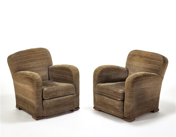 Coppia di poltrone Novecento con struttura in legno e rivestimento in velluto verde. Italia, anni '30. (cm 75x81x75) (difetti)