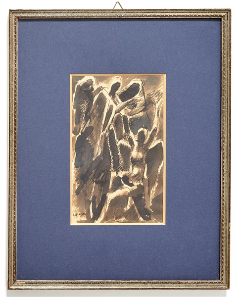 Studio per gruppo scultoreo. Roma, anni '30/'40. Inchiostro di china acquarellata su carta. Firmato "A. BIAGINI" in basso a sinistra. (cm 20.5x12,5). In cornice.