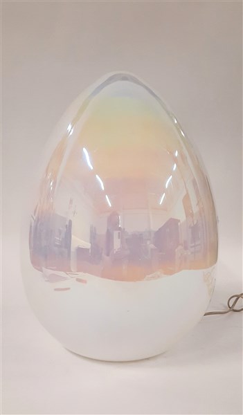 Manifattura di Murano Lampada da tavolo in vetro lattimo fortemente iridato. An