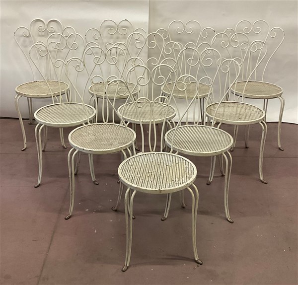 Dieci sedie da giardino in ferro verniciato bianco. Italia, anni '50. (cm 48x87x41) (difetti)