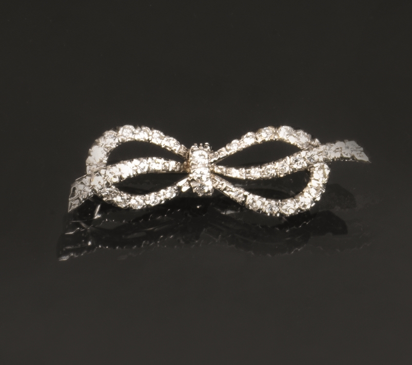 Lot 269 | Spilla in oro bianco e diamantimodellata a fiocco incastonato di diamanti,...
