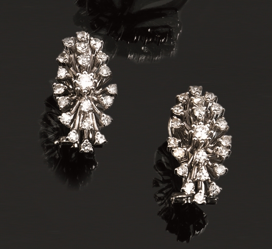 Paio di orecchini in oro bianco e diamantien suite con il lotto precedente, g 11