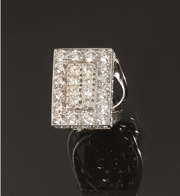 Lot 286 | Anello in oro bianco e diamantidi forma rettangolare, interamente decorato da...