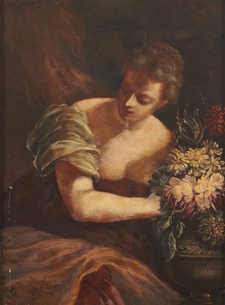 Scuola del XIX secolo, Flora. Olio su tela ( cm 75,5x56,5) in cornice in legno