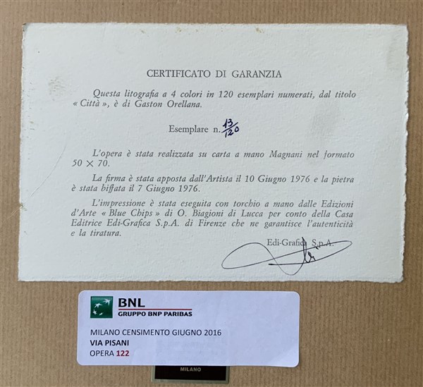 Gaston Orellana "Città" litografia a colori (cm 50x70) es. 13/120, firmato e num