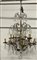 Lampadario a sedici luci con struttura in metallo brunito, fusto e pendagli in
