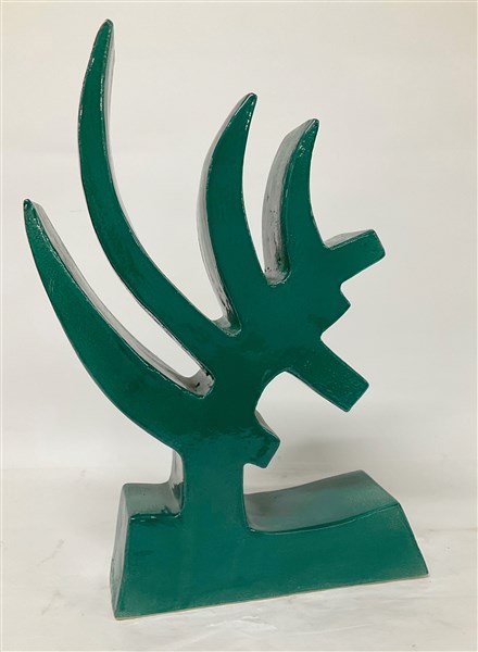 Firma indecifrata, scultura astratta in gesso smaltato verde (h. cm 47) firmata