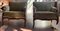Coppia di poltrone in noce con schienale squadrato, gambe e braccioli mossi int