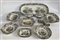 Manifattura inglese, Devon, secolo XIX. Parte di servizio in porcellana a bordo mosso decorata in monocromia a vedute nel cavetto e a fiori e foglie nella falda, composto da: ventitre piatti fondi, settanta piatti piani, ventiquattro piatti da frutta, due legumiere con coperchio, un'alzata biansata, una zuppiera biansata con coperchio, due salsiere con coperchio, un grande vassoio ovale da portata, due cremiere con piattino e coperchio, due raviere, due piccoli vassoi, dodici vassoi di diverse misure, quattro vassoi biansati (difetti e mancanze)