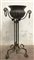 Fioriera tripode con struttura in ferro battuto e bacile in rame sbalzato con f