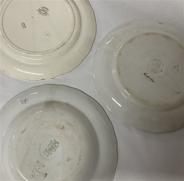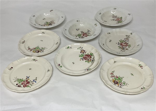 Lotto composto da cinque piatti piani e tre fondi in ceramica policroma modello