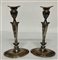 Manifattura inglese, coppia di candelieri in metallo argentato con profili ungh