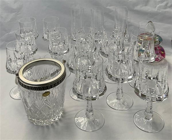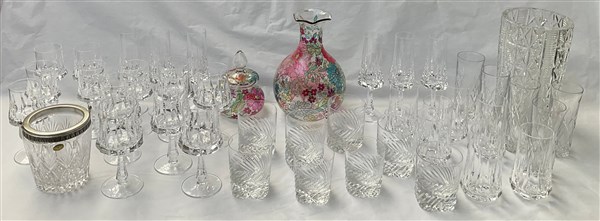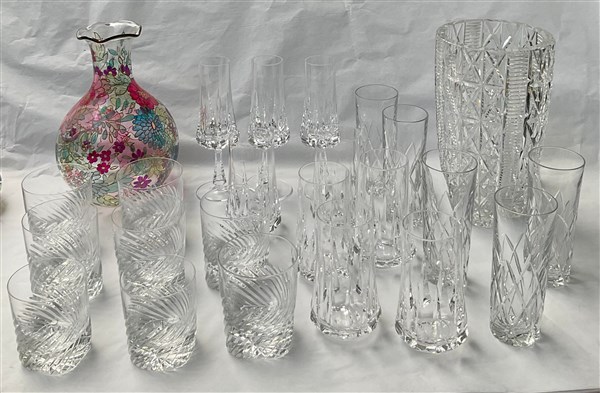 Lotto composto da numerosi bicchieri e quattro vasi in vetro e cristallo (lievi