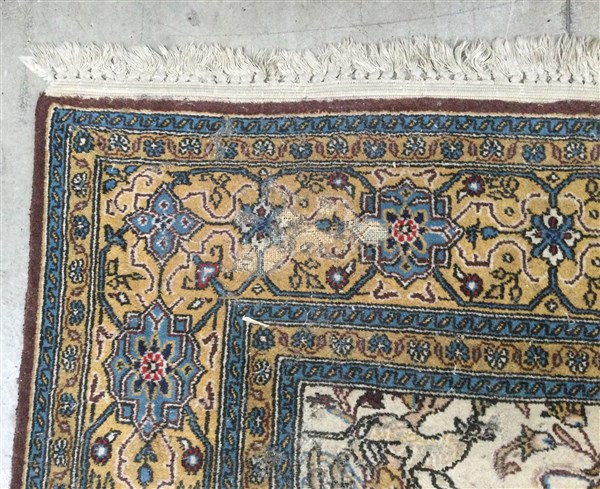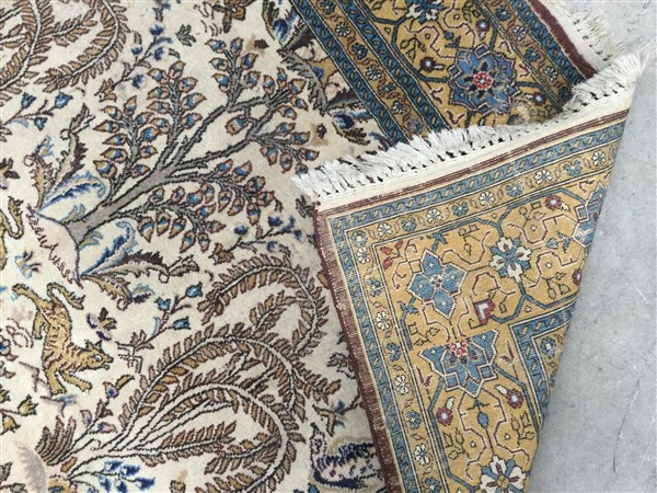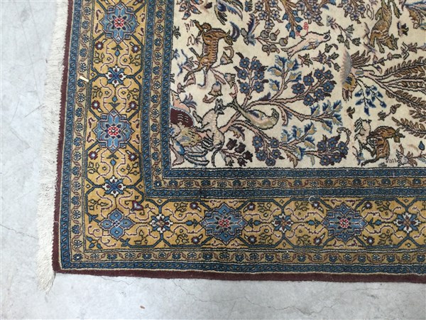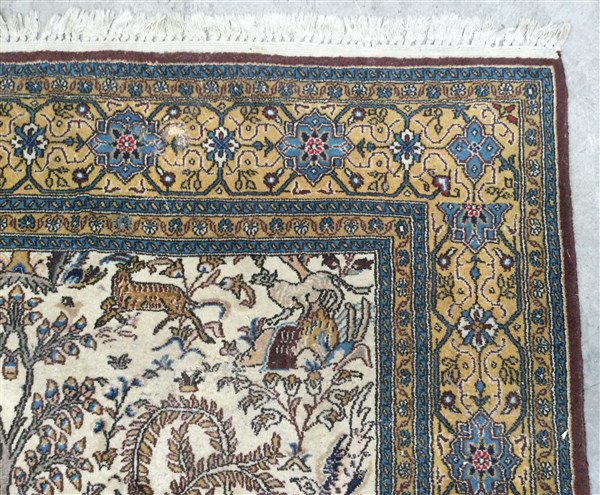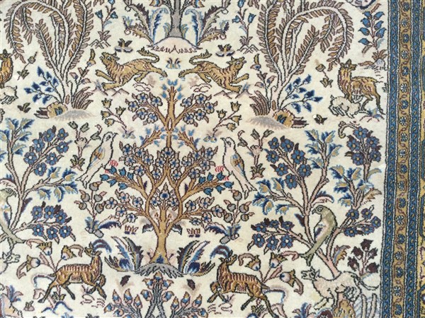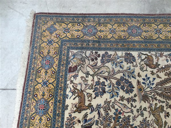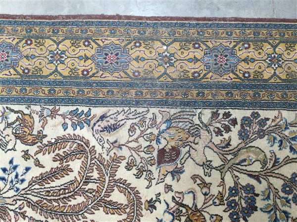 Tappeto Qum, Persia, secolo XX. Decoro a "giardino dell'Eden" su fondo bianco (cm 285x170) (difetti)
