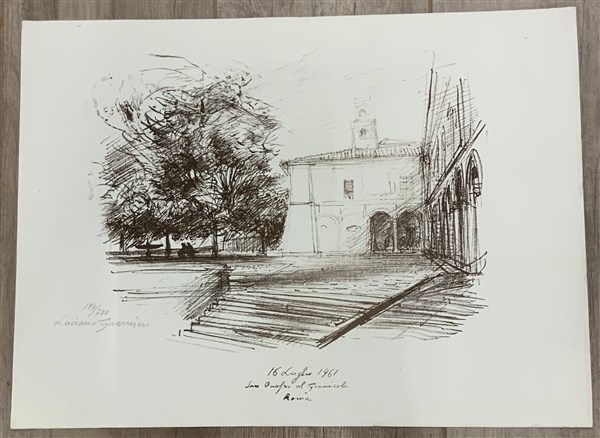 Luciano Guarnieri "San Onofirio al Gianicolo, Roma" 1961 litografia cm 38x51 fir