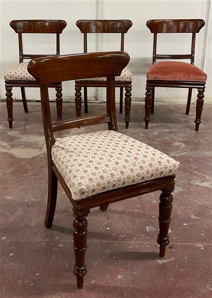Lot 1906 | Gruppo di quattro sedie inglesi in mogano con gambe anteriori tornite e schiena