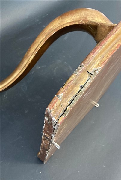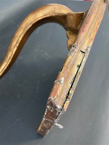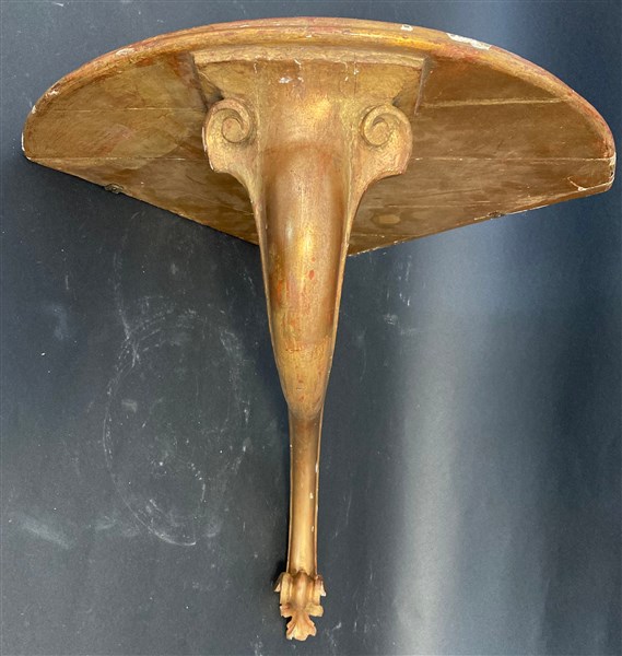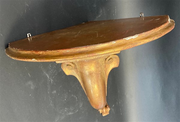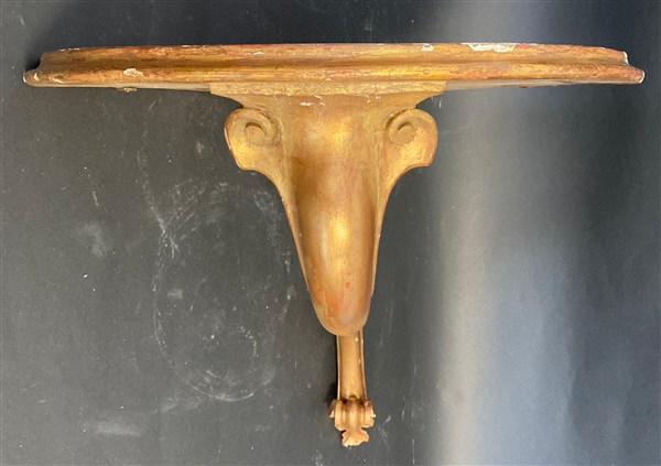 Console pensile in legno intagliato e dorato. Secolo XIX (cm 60x54x43) (difetti)