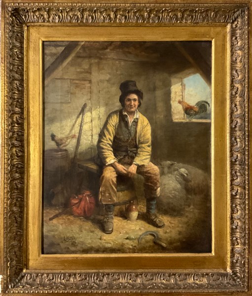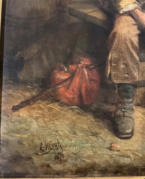 Charles Henry Cook "Viandante nella stalla" 1876, olio su tela (cm 52x41) Firmat