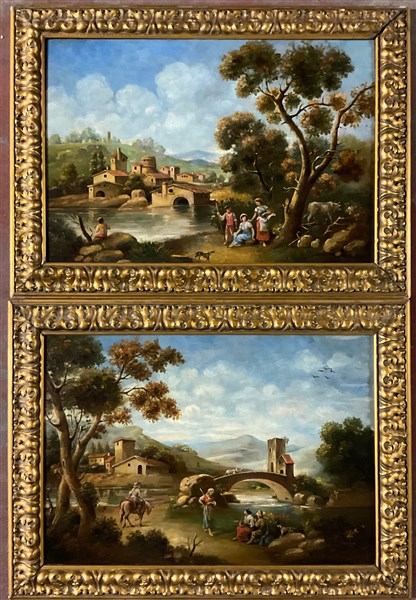 Lot 1938 | Ignoto del XIX secolo "Paesaggi fluviali con pastori" coppia di dipinti ad olio