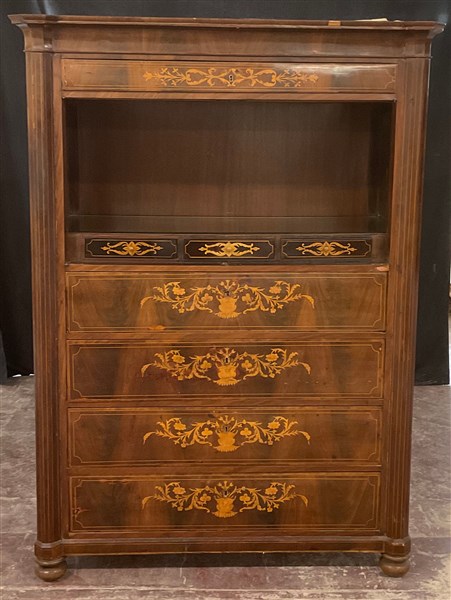 Lot 1949 | Secretaire lastronato in mogano, intarsiato e filettato in legno chiaro, due an