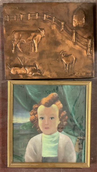 Lot 1963 | Lotto composto da un altorilievo in rame raffigurante mucche ed un dipinto raff