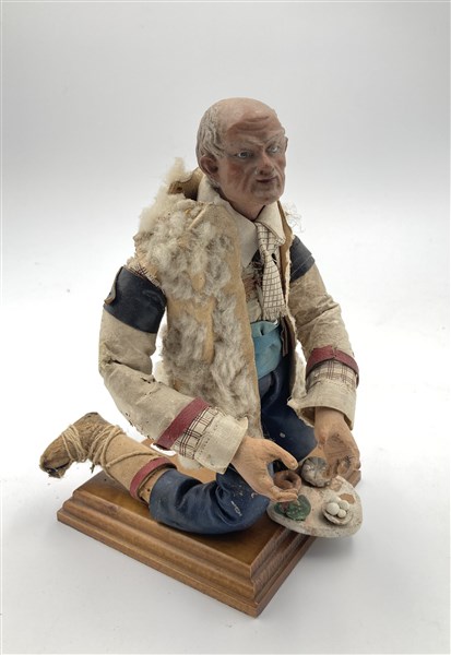 Arte napoletana, secolo XIX. "Figura popolare inginocchiata" scultura da presep