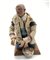Arte napoletana, secolo XIX. "Figura popolare inginocchiata" scultura da presepe in terracotta dipinta in policromia, decorata con abiti in tessuto, pelle e pelliccia, con applicazioni in metallo, occhi in pasta vitrea. Poggiante su base in legno (cm 14x23) (difetti)