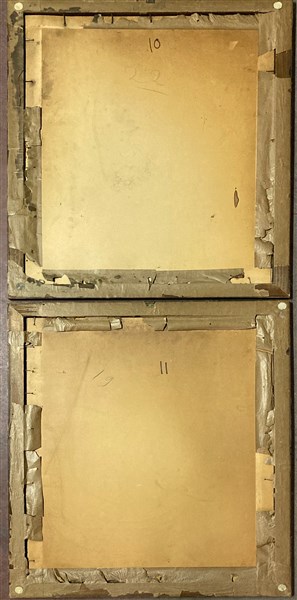 J.Browne "Scene all'aperto con contadini" coppia di acqueforti (cm 60x48) in cornici (difetti)