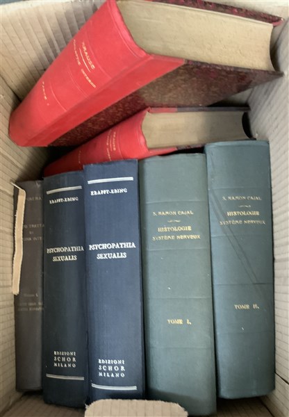 Lotto composto da quattro cartoni contenenti numerosi volumi dedicati principalmente alla medicina e alla psichiatria [4]