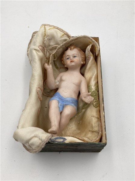 "Gesù Bambino" scultura da presepe in porcellana dipinta in policromia (L. cm 1