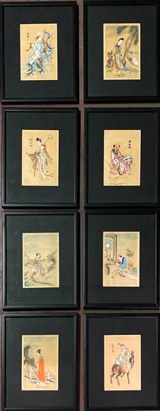 Lot 1991 | Gruppo di otto tecniche miste raffiguranti personaggi (cm 17,5x13) in cornici e