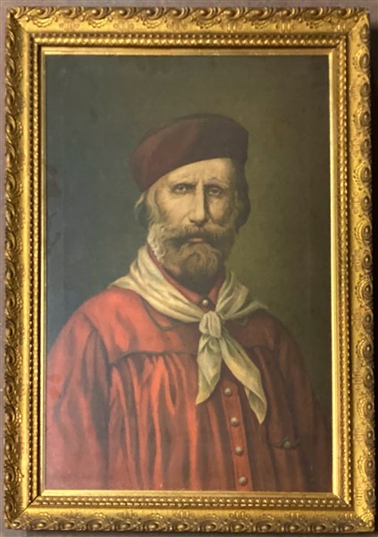 Coppia di riproduzioni su tela raffiguranti "Mazzini" e "Garibaldi" (cm 66x48) in cornici
