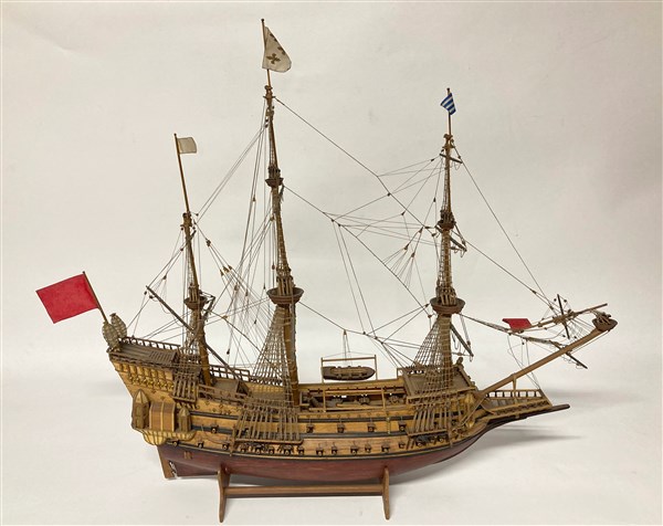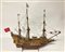Modello di galeone in legno a tre alberi (cm 66x70) (difetti)