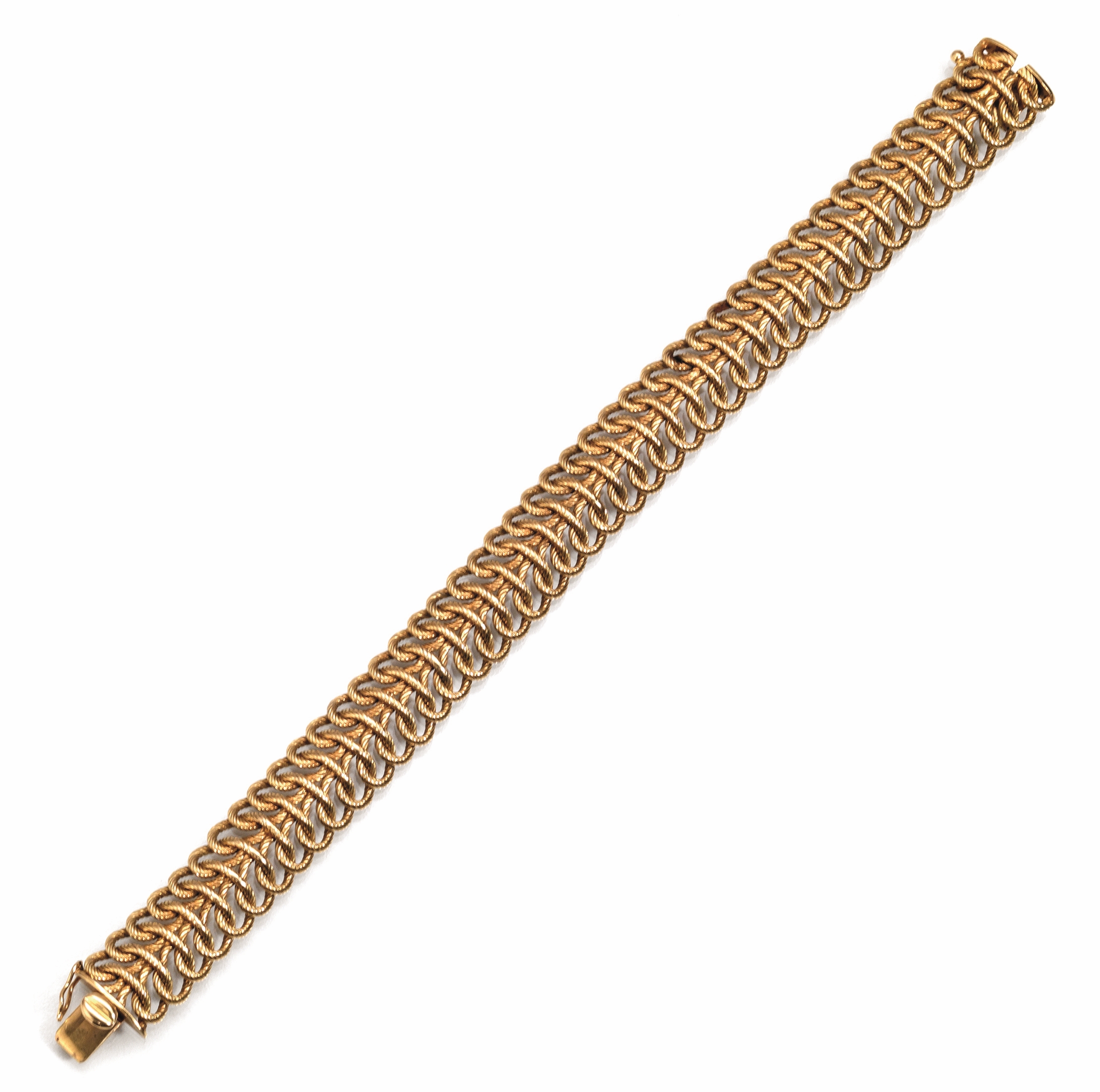 Bracciale in oro giallolavorato a nastro con cordonetti intrecciati, punzone...