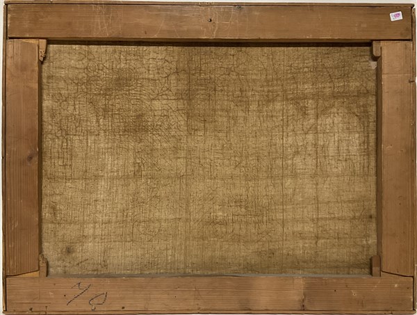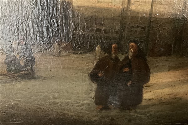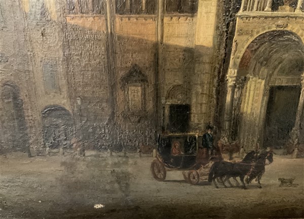 Ignoto del XIX Secolo, " Duomo di Ferrara con figure" olio su tela (cm 55x75) in cornice (difetti)