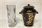Lotto composto da un vaso portafiori in cristallo molato ed un contenitore con coperchio in ceramica dipinto e decorato a dorature, misure diverse (difetti)