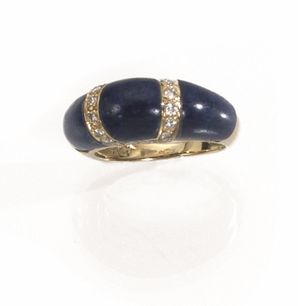 Anello in oro giallo, lapislazzuli e diamanti