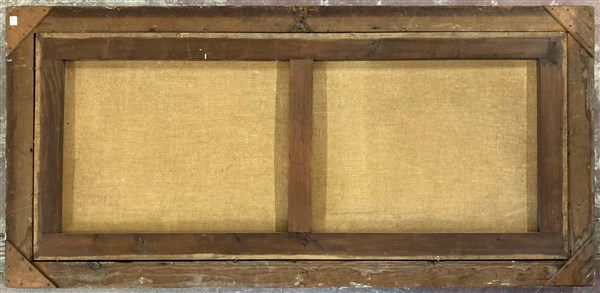 Scuola del secolo XVII, "Riposo durante la fuga in Egitto", olio su tela (cm 60x135) In cornice