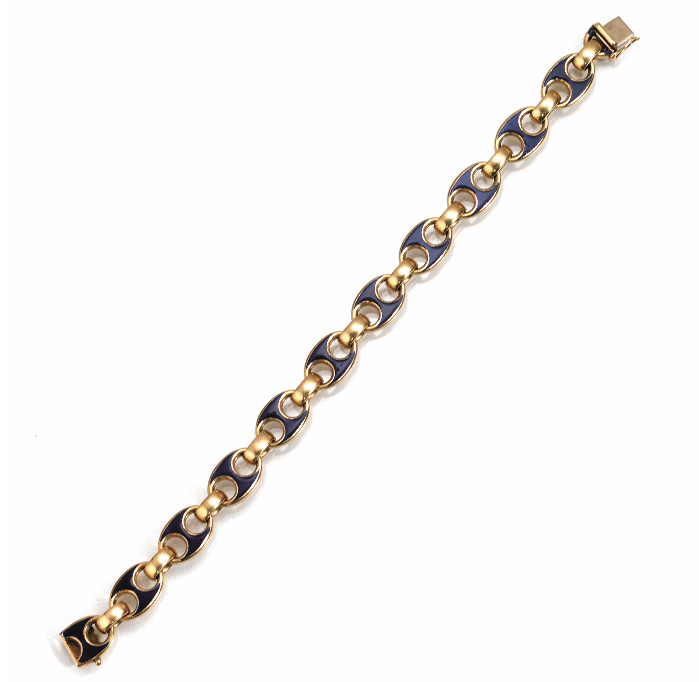 Lot 322 | Bracciale in oro giallo e smaltorealizzato ad una fila di maglie marine...