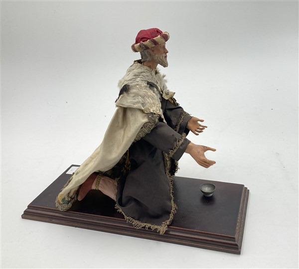 Arte napoletana, secolo XIX. "Melchiorre inginocchiato" scultura da presepe in