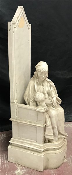 Manifattura secolo XIX, Madre con bambino su trono, scultura in maiolica smaltata (h cm 73) (difetti e rotture)