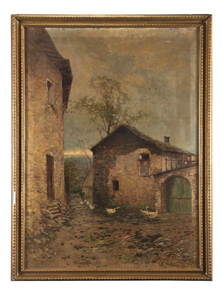 Eugenio Gignous "Case di campagna" olio su tela (cm 150x110) Firmato e datato i
