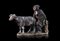 19th-century art "Milker and goat" polychrome terracotta group (cm 19x14x7) (defects and breakage)