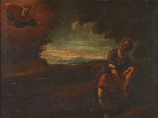 Ignoto, antico dipinto raffigurante scena della vita di Mosè, olio su tela (cm